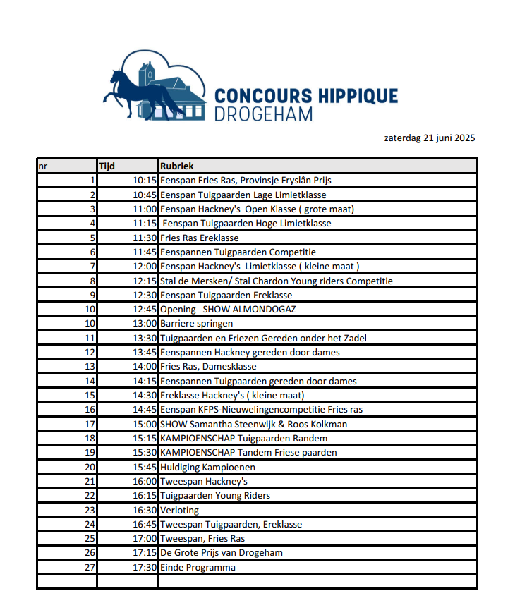 Tijdschema vervroegd ivm zomerse temperaturen !